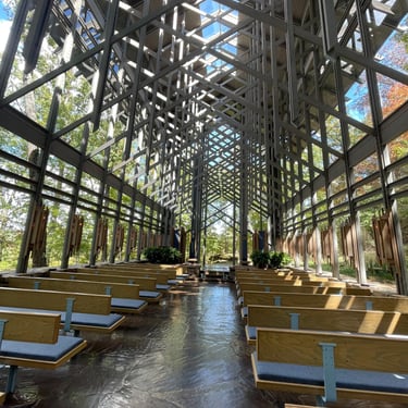 Eureka Springs is also a place of reflection and renewal. This reputation is carried on at landmarks like the Thorncrown Chapel, an architectural masterpiece made almost entirely of glass and wood, hidden within a forest just outside of town. When sunlight filters through the 425 windows, the chapel seems to dissolve into the trees, creating a breathtaking space for both quiet contemplation and weddings.